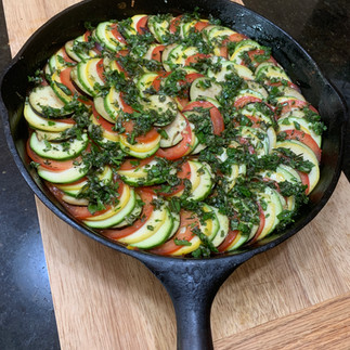 Ratatouille was once considered to be the food of poor people. They cooked their left-over vegetables for hours and sometimes vegetable waste even found its way into the pot. Today ratatouille is popular all over Europe and has even found its way into the kitchens of the world’s top chefs. Serve while hot as a main dish or side. Ratatouille is also excellent the next day; cover with foil and reheat in a 350°F oven for 15 minutes, or microwave to desired temperature.